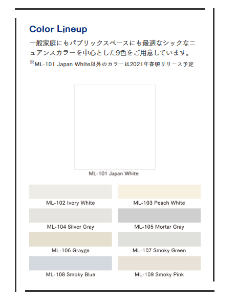 これまで「しっくい仕上げの雰囲気や機能性は魅力的だけど、時間や費用がかかるため仕方なく諦めた」との声も多く聞かれたしっくい。施工性が高く、高度な官技術がなくても塗料を塗る要領で施工できる新しい本格しっくいにより、幅広い物件や建物で導入しやすくなりました。